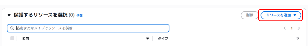 「保護するリソースを選択」で「リソースを追加」ボタンをクリックします。