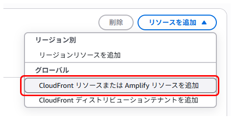 「CloudFront リソースまたは Amplify リソースを追加」を選択します。